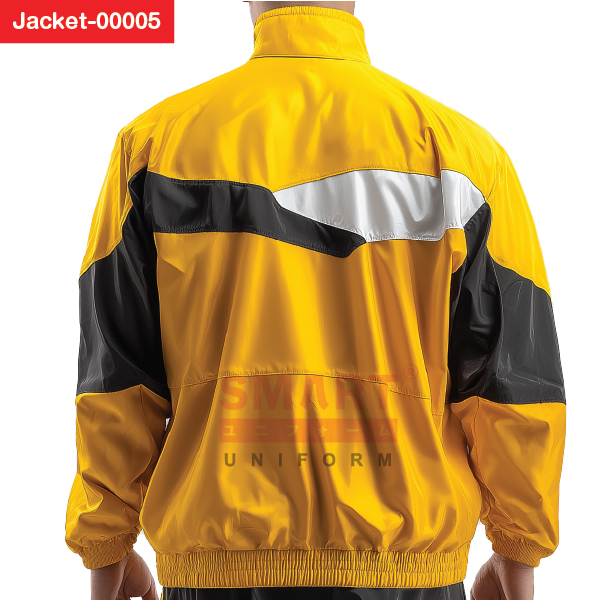 แจ็คเก็ตยูนิฟอร์มสีเหลืองตัดดำแถบตัววีสีขาวรุ่นนี้ถูกออกแบบมาเพื่อทีมงานที่ต้องทำงานกลางแจ้งหรือในพื้นที่ที่ต้องการการมองเห็นชัดเจน สีเหลืองสดช่วยให้พนักงานโดดเด่นบนพื้นที่ทำงาน ในขณะที่การตัดสีดำบริเวณแขนและด้านข้างช่วยเพิ่มมิติให้ลุคโดยรวมดูเข้ม เท่ และเป็นมืออาชีพมากขึ้น เส้นลายตัววีสีขาวบริเวณรอบอกและช่วงไหล่ทำให้แจ็คเก็ตดูมีดีไซน์ทันสมัย ช่วยดึงสายตาและสร้างเอกลักษณ์ประจำทีมได้อย่างชัดเจน เมื่อต้องถ่ายภาพหมู่หรือทำกิจกรรมกลางแจ้ง ชุดยูนิฟอร์มจะโดดเด่นและจดจำได้ง่าย