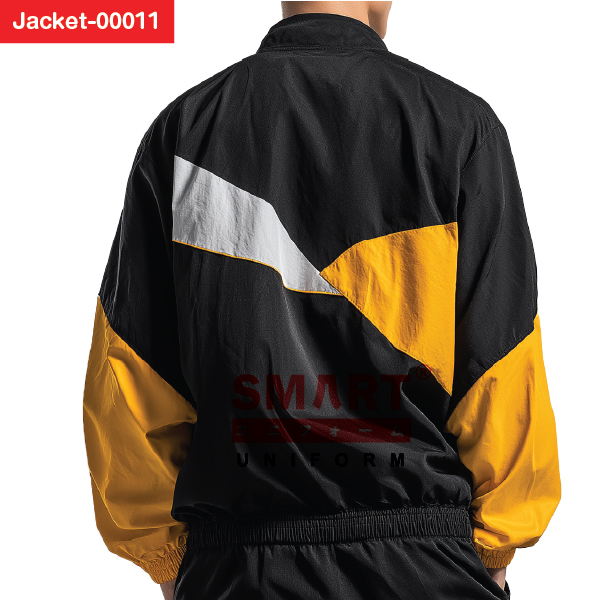 แจ็คเก็ตสีดำแต่งเหลืองลายกราฟิกรุ่นนี้ออกแบบมาเพื่อคนทำงานที่อยากได้เสื้อแจ็คเก็ตฟังก์ชันครบ แต่คาแรกเตอร์ไม่เหมือนแจ็คเก็ตยูนิฟอร์มทั่วไป ตัวเสื้อใช้สีดำเป็นพื้นหลัก ให้ความรู้สึกสุขุมและมืออาชีพ แต่งด้วยแผงสีเหลืองสดและสีขาวในรูปทรงกราฟิกเฉียงทั้งด้านหน้าและด้านหลัง ทำให้แจ็คเก็ตดูมีมิติและเคลื่อนไหวไปกับร่างกาย ช่วยให้ทีมงานหรือผู้สวมใส่โดดเด่น สร้างภาพจำได้ดีในงานอีเวนต์ งานโปรโมต หรือหน้างานที่ต้องพบปะผู้คนจำนวนมาก