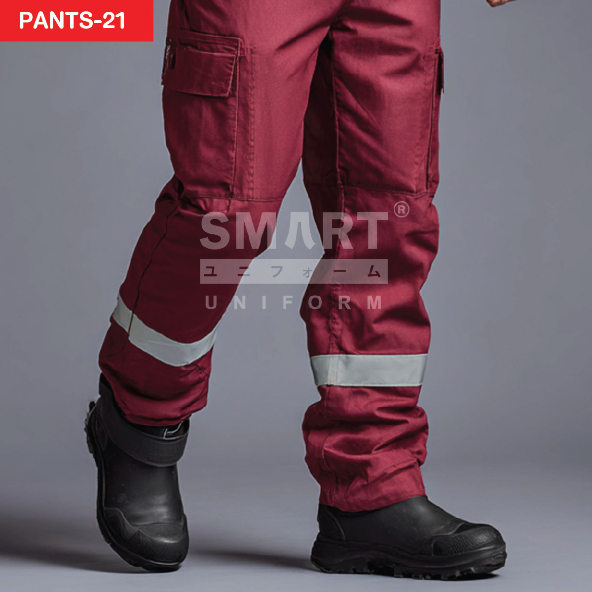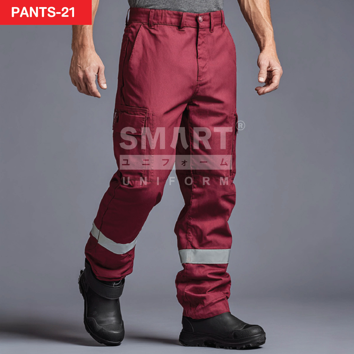 Pants-00021 กางเกงช็อปช่าง สีเลือดหมู กระเป๋าคาร์โก้ แถบสะท้อนแสง